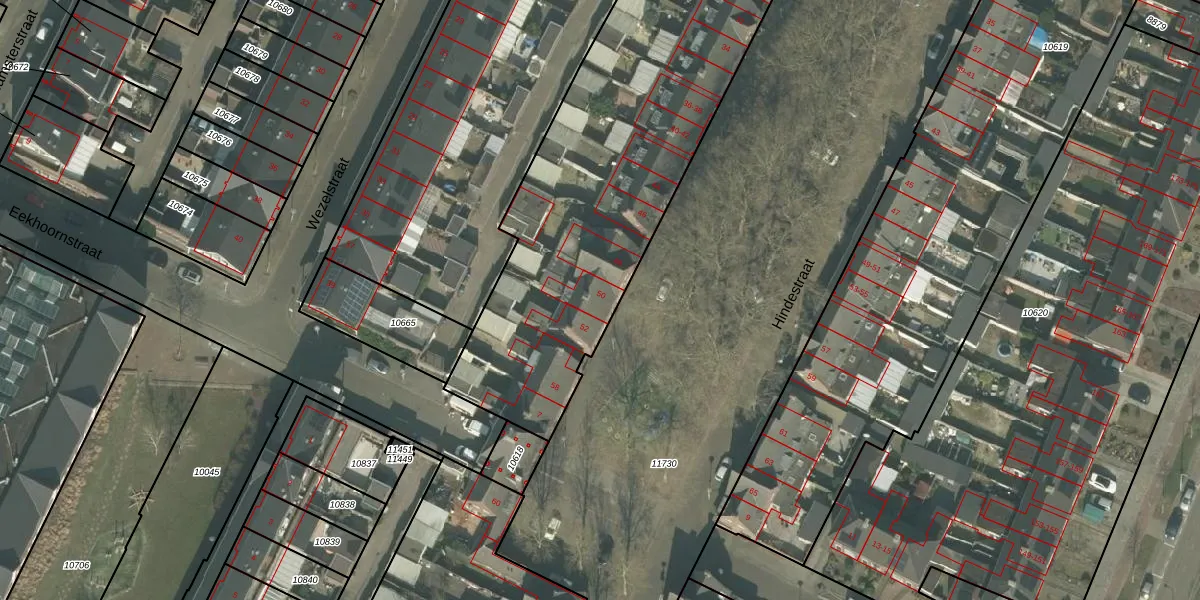 Hindestraat 50 is gelegen op kadastraal perceel HMD00C10616. Deze kadastrale aanduiding is uniek en wordt gebruikt door het Kadaster om eigendomsrechten en andere zakelijke rechten vast te leggen. Het perceel maakt onderdeel uit van de kadastrale gemeente Helmond.