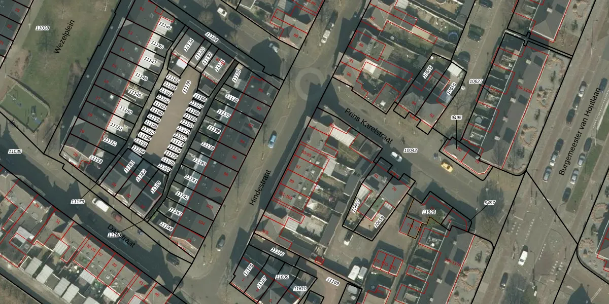 Hindestraat 95 is gelegen op kadastraal perceel HMD00C11827. Deze kadastrale aanduiding is uniek en wordt gebruikt door het Kadaster om eigendomsrechten en andere zakelijke rechten vast te leggen. Het perceel maakt onderdeel uit van de kadastrale gemeente Helmond.
