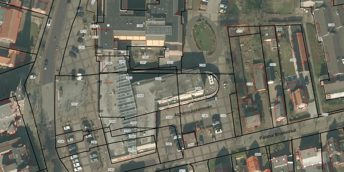 Het adres is gelegen op perceel 7054 in de sectie T en de kadastrale gemeente Helmond. De kadastrale aanduiding is aldus HMD00-T-7054. De gemiddelde perceelgrootte in Helmond is 1470,79 m². Dit perceel is kleiner: de perceeloppervlakte bedraagt 1093 m². De grootste perceeloppervlakte in de kadastrale gemeente is 1,14 km². De kleinste oppervlakte bedraagt 0 m². Op het perceel liggen in totaal 20 adressen. De huidige grenzen van het perceel zijn digitaal in de Basisregistratie Kadaster (BRK) geregistreerd op 23-02-2009.