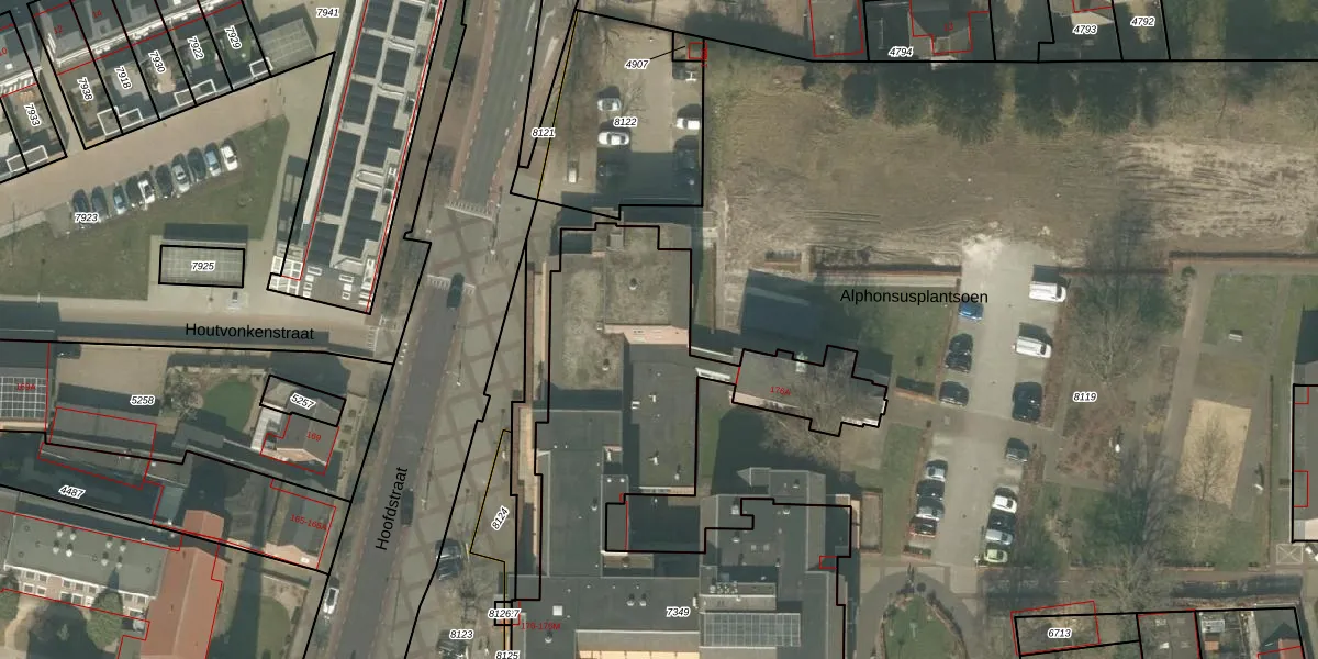 Het perceel waarop Hoofdstraat 176-228 staat heeft een oppervlakte van 2603 m². Dit is een zeer groot perceel. De perceeloppervlakte wordt geregistreerd door het Kadaster. Gedetailleerde informatie over de maten van dit perceel kunt u vinden in het rapport Kadastrale kaart met maatvoering van Hoofdstraat 176-228.
