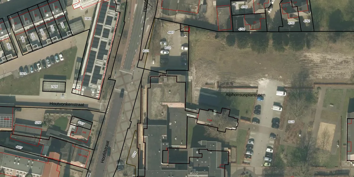 Het perceel waarop Hoofdstraat 176-229 staat heeft een oppervlakte van 2603 m². Dit is een zeer groot perceel. De perceeloppervlakte wordt geregistreerd door het Kadaster. Gedetailleerde informatie over de maten van dit perceel kunt u vinden in het rapport Kadastrale kaart met maatvoering van Hoofdstraat 176-229.