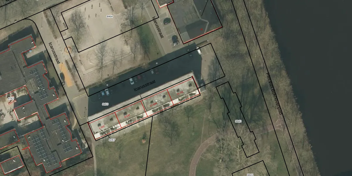 Het perceel waarop Icarusstraat 33-K staat heeft een oppervlakte van 750 m². Dit is een groot perceel. De perceeloppervlakte wordt geregistreerd door het Kadaster. Gedetailleerde informatie over de maten van dit perceel kunt u vinden in het rapport Kadastrale kaart met maatvoering van Icarusstraat 33-K.