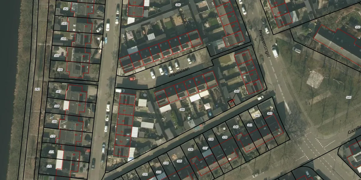 Het perceel waarop Impalalaan 39 staat heeft een oppervlakte van 2760 m². Dit is een zeer groot perceel. De perceeloppervlakte wordt geregistreerd door het Kadaster. Gedetailleerde informatie over de maten van dit perceel kunt u vinden in het rapport Kadastrale kaart met maatvoering van Impalalaan 39.