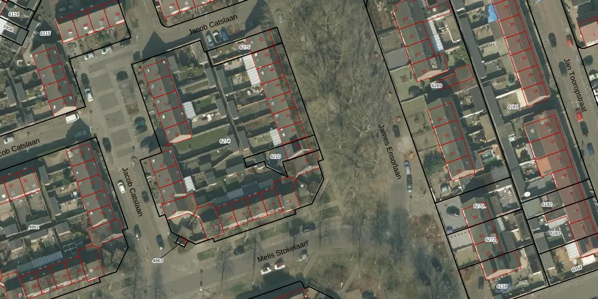 James Ensorlaan 38 is gelegen op kadastraal perceel HMD00B6210. Deze kadastrale aanduiding is uniek en wordt gebruikt door het Kadaster om eigendomsrechten en andere zakelijke rechten vast te leggen. Het perceel maakt onderdeel uit van de kadastrale gemeente Helmond.