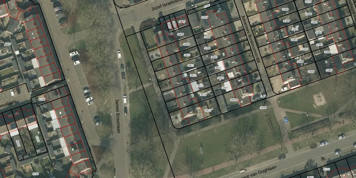 James Ensorlaan 5 is gelegen op kadastraal perceel HMD00B3413. Deze kadastrale aanduiding is uniek en wordt gebruikt door het Kadaster om eigendomsrechten en andere zakelijke rechten vast te leggen. Het perceel maakt onderdeel uit van de kadastrale gemeente Helmond.