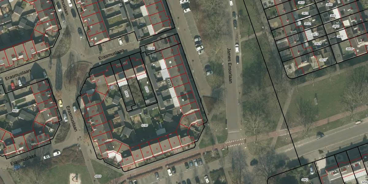 Het perceel waarop James Ensorlaan 8 staat heeft een oppervlakte van 3118 m². Dit is een zeer groot perceel. De perceeloppervlakte wordt geregistreerd door het Kadaster. Gedetailleerde informatie over de maten van dit perceel kunt u vinden in het rapport Kadastrale kaart met maatvoering van James Ensorlaan 8.