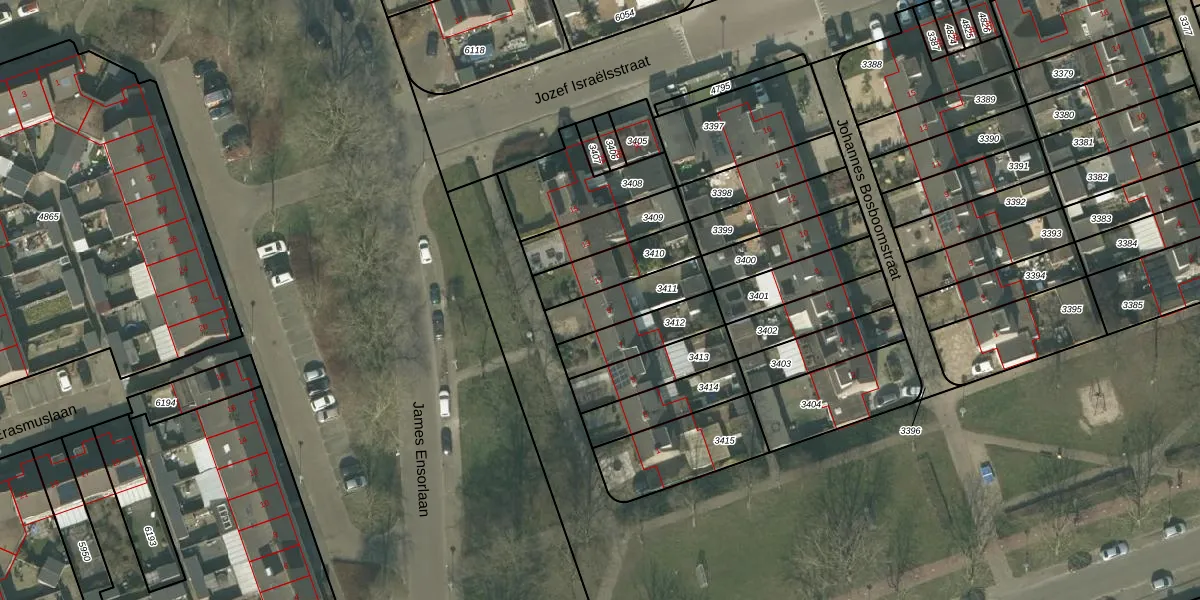 James Ensorlaan 9 is gelegen op kadastraal perceel HMD00B3411. Deze kadastrale aanduiding is uniek en wordt gebruikt door het Kadaster om eigendomsrechten en andere zakelijke rechten vast te leggen. Het perceel maakt onderdeel uit van de kadastrale gemeente Helmond.