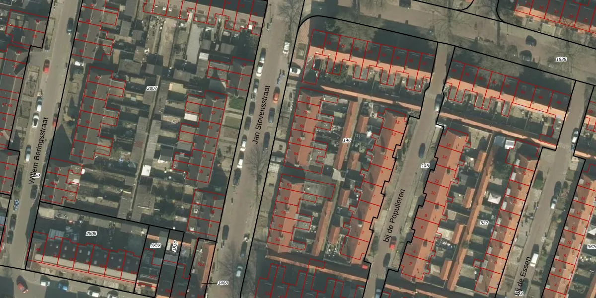 Het perceel waarop Jan Stevensstraat 64 staat heeft een oppervlakte van 4330 m². Dit is een zeer groot perceel. De perceeloppervlakte wordt geregistreerd door het Kadaster. Gedetailleerde informatie over de maten van dit perceel kunt u vinden in het rapport Kadastrale kaart met maatvoering van Jan Stevensstraat 64.