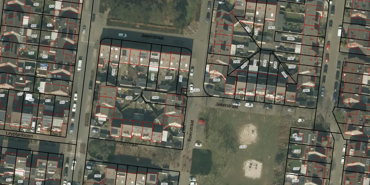 Het perceel waarop Jekerstraat 17-A staat heeft een oppervlakte van 8 m². Dit is een klein perceel. De perceeloppervlakte wordt geregistreerd door het Kadaster. Gedetailleerde informatie over de maten van dit perceel kunt u vinden in het rapport Kadastrale kaart met maatvoering van Jekerstraat 17-A.