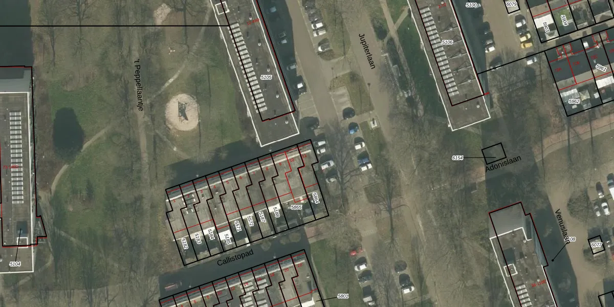 Gebruik de zoekbalk of klik op een perceel voor informatie over de adressen binnen dit perceel.