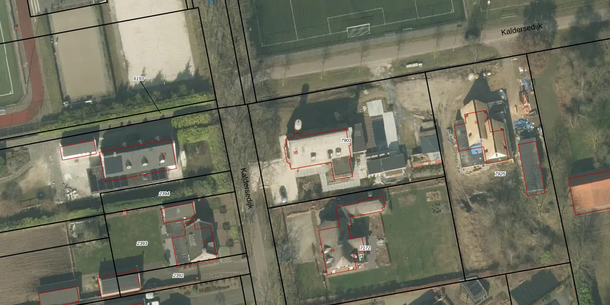 Kaldersedijk 30 is gelegen op kadastraal perceel HMD00U7903. Deze kadastrale aanduiding is uniek en wordt gebruikt door het Kadaster om eigendomsrechten en andere zakelijke rechten vast te leggen. Het perceel maakt onderdeel uit van de kadastrale gemeente Helmond.