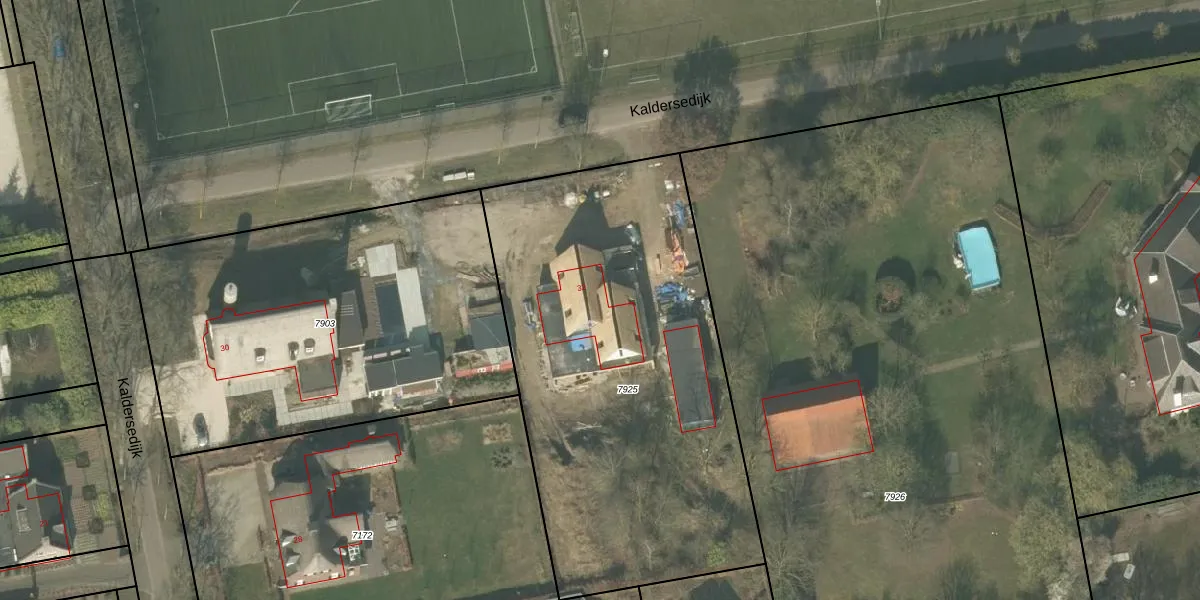 Kaldersedijk 32 is gelegen op kadastraal perceel HMD00U7925. Deze kadastrale aanduiding is uniek en wordt gebruikt door het Kadaster om eigendomsrechten en andere zakelijke rechten vast te leggen. Het perceel maakt onderdeel uit van de kadastrale gemeente Helmond.