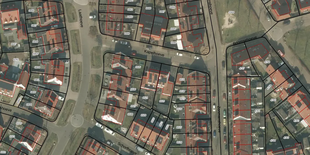Kapelhoeve 5 is gelegen op kadastraal perceel HMD00U6521. Deze kadastrale aanduiding is uniek en wordt gebruikt door het Kadaster om eigendomsrechten en andere zakelijke rechten vast te leggen. Het perceel maakt onderdeel uit van de kadastrale gemeente Helmond.