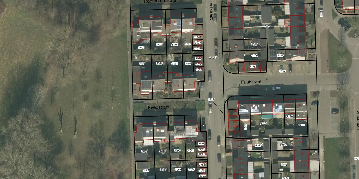 Gebruik de zoekbalk of klik op een perceel voor informatie over de adressen binnen dit perceel.