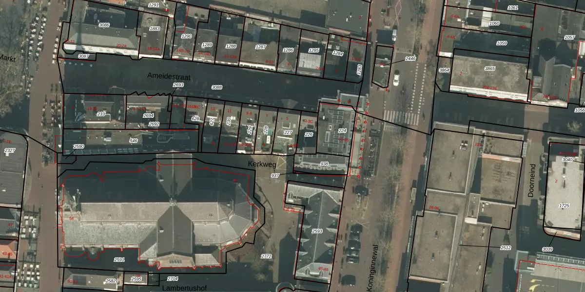 Kerkweg 6-B is gelegen op kadastraal perceel HMD00I227. Deze kadastrale aanduiding is uniek en wordt gebruikt door het Kadaster om eigendomsrechten en andere zakelijke rechten vast te leggen. Het perceel maakt onderdeel uit van de kadastrale gemeente Helmond.