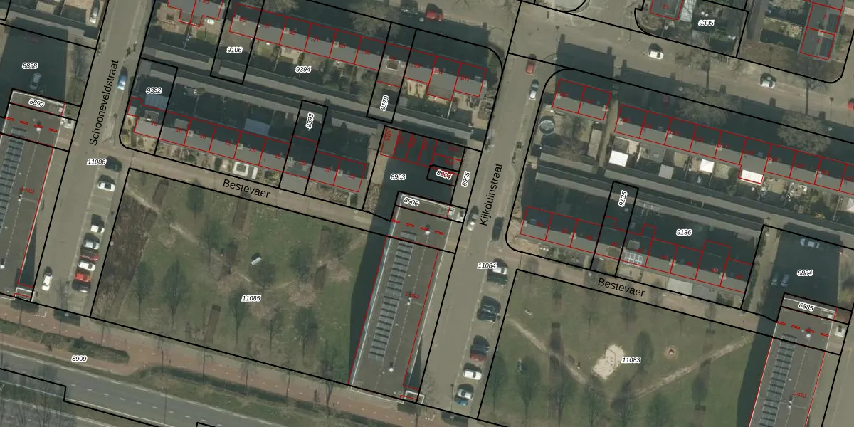 Het perceel waarop Kijkduinstraat 23 staat heeft een oppervlakte van 55 m². Dit is een klein perceel. De perceeloppervlakte wordt geregistreerd door het Kadaster. Gedetailleerde informatie over de maten van dit perceel kunt u vinden in het rapport Kadastrale kaart met maatvoering van Kijkduinstraat 23.