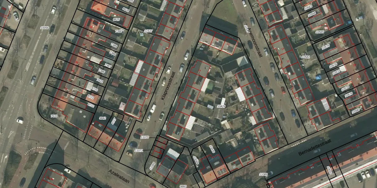 Het perceel waarop Klaproosstraat 10 staat heeft een oppervlakte van 2919 m². Dit is een zeer groot perceel. De perceeloppervlakte wordt geregistreerd door het Kadaster. Gedetailleerde informatie over de maten van dit perceel kunt u vinden in het rapport Kadastrale kaart met maatvoering van Klaproosstraat 10.