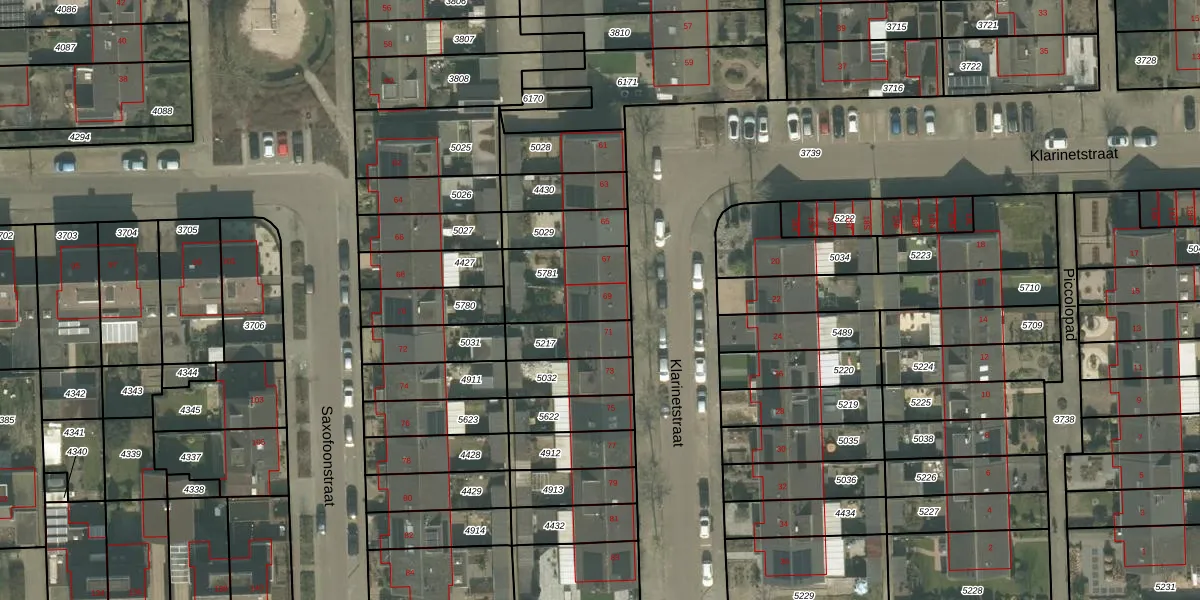 Het perceel waarop Klarinetstraat 69 staat heeft een oppervlakte van 261 m². Dit is een middelgroot perceel. De perceeloppervlakte wordt geregistreerd door het Kadaster. Gedetailleerde informatie over de maten van dit perceel kunt u vinden in het rapport Kadastrale kaart met maatvoering van Klarinetstraat 69.