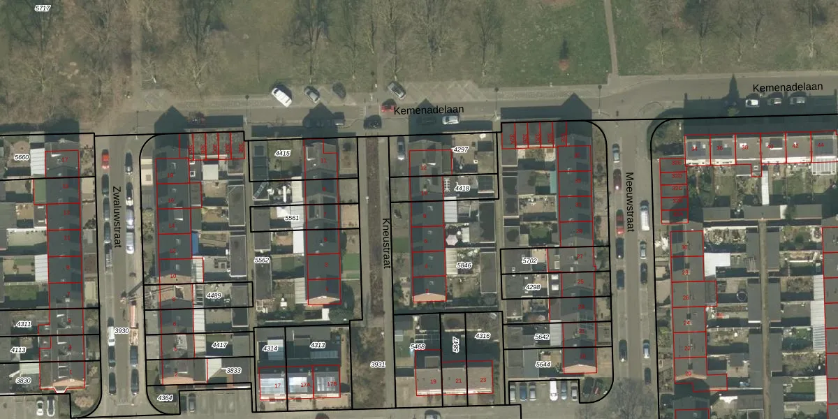 Het perceel waarop Kneustraat 8 staat heeft een oppervlakte van 1619 m². Dit is een zeer groot perceel. De perceeloppervlakte wordt geregistreerd door het Kadaster. Gedetailleerde informatie over de maten van dit perceel kunt u vinden in het rapport Kadastrale kaart met maatvoering van Kneustraat 8.