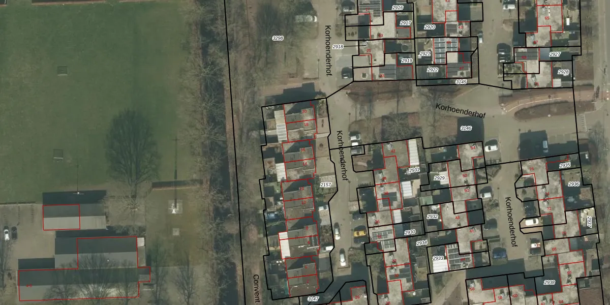 Korhoenderhof 16 is gelegen op kadastraal perceel HMD00E2157. Deze kadastrale aanduiding is uniek en wordt gebruikt door het Kadaster om eigendomsrechten en andere zakelijke rechten vast te leggen. Het perceel maakt onderdeel uit van de kadastrale gemeente Helmond.