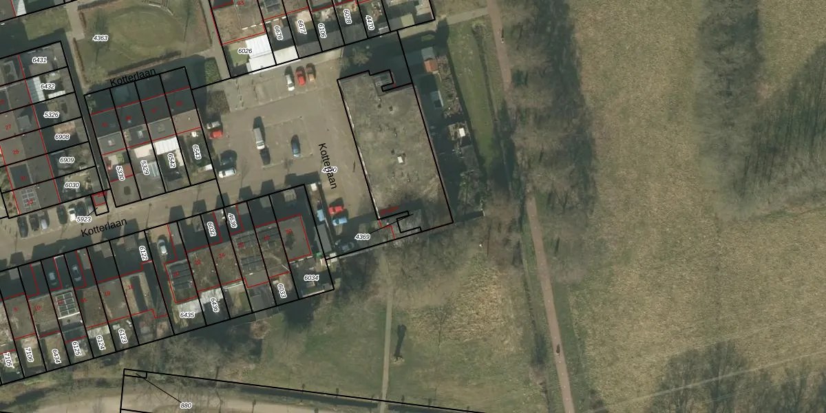 Het perceel waarop Kotterlaan 50 staat heeft een oppervlakte van 633 m². Dit is een groot perceel. De perceeloppervlakte wordt geregistreerd door het Kadaster. Gedetailleerde informatie over de maten van dit perceel kunt u vinden in het rapport Kadastrale kaart met maatvoering van Kotterlaan 50.