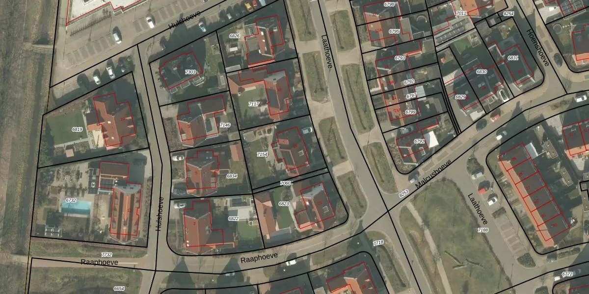 Het perceel waarop Laathoeve 18 staat heeft een oppervlakte van 505 m². Dit is een groot perceel. De perceeloppervlakte wordt geregistreerd door het Kadaster. Gedetailleerde informatie over de maten van dit perceel kunt u vinden in het rapport Kadastrale kaart met maatvoering van Laathoeve 18.