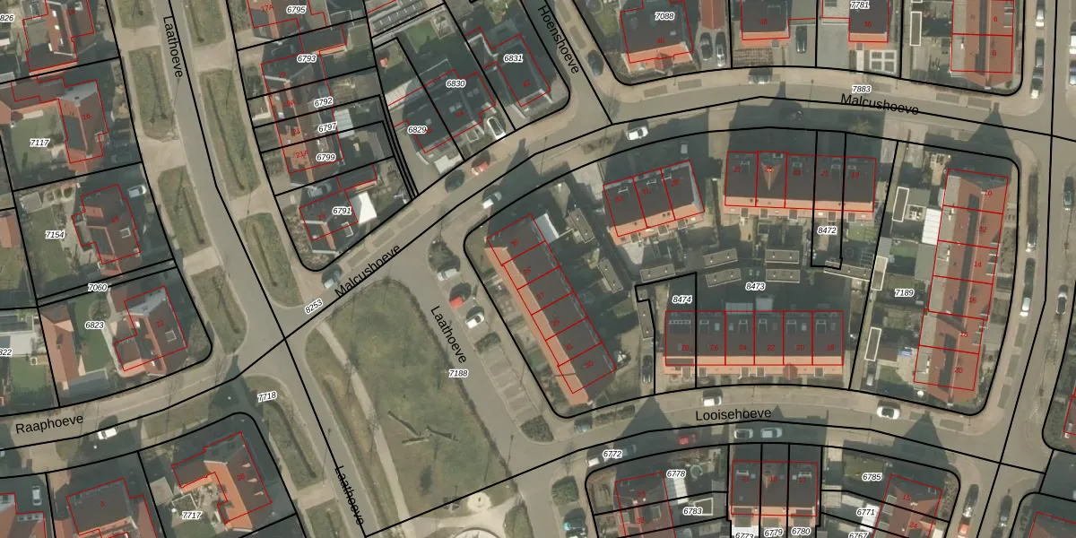 Het perceel waarop Laathoeve 25 staat heeft een oppervlakte van 2870 m². Dit is een zeer groot perceel. De perceeloppervlakte wordt geregistreerd door het Kadaster. Gedetailleerde informatie over de maten van dit perceel kunt u vinden in het rapport Kadastrale kaart met maatvoering van Laathoeve 25.