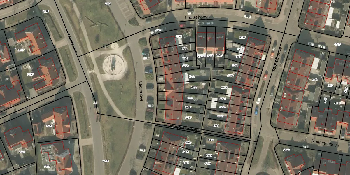 Het perceel waarop Laathoeve 41 staat heeft een oppervlakte van 183 m². Dit is een middelgroot perceel. De perceeloppervlakte wordt geregistreerd door het Kadaster. Gedetailleerde informatie over de maten van dit perceel kunt u vinden in het rapport Kadastrale kaart met maatvoering van Laathoeve 41.