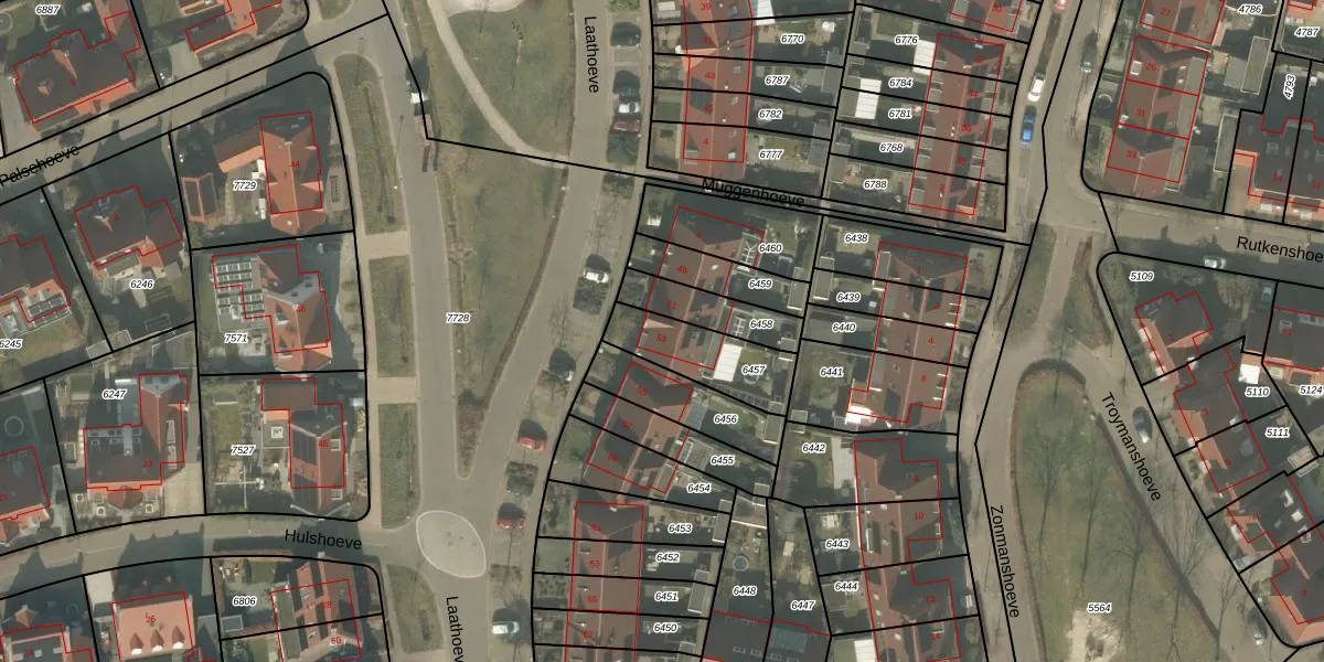 Laathoeve 53 is gelegen op kadastraal perceel HMD00U6457. Deze kadastrale aanduiding is uniek en wordt gebruikt door het Kadaster om eigendomsrechten en andere zakelijke rechten vast te leggen. Het perceel maakt onderdeel uit van de kadastrale gemeente Helmond.