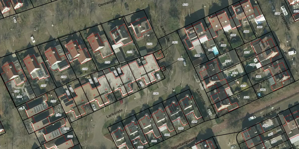Het perceel waarop Lariksrode 2 staat heeft een oppervlakte van 189 m². Dit is een middelgroot perceel. De perceeloppervlakte wordt geregistreerd door het Kadaster. Gedetailleerde informatie over de maten van dit perceel kunt u vinden in het rapport Kadastrale kaart met maatvoering van Lariksrode 2.