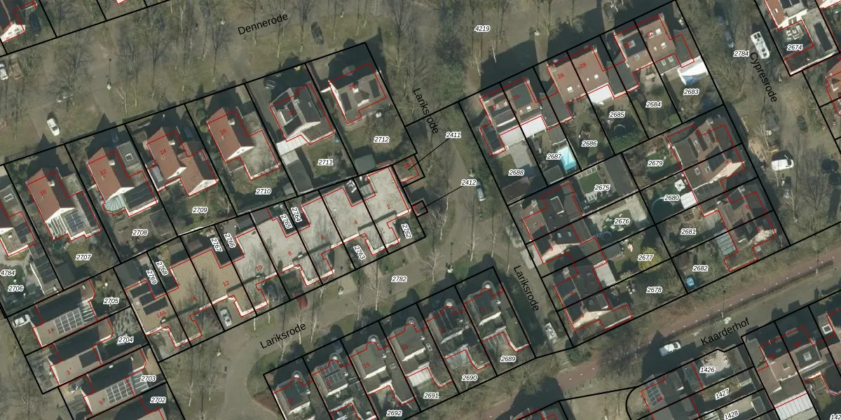 Het perceel waarop Lariksrode 2-A staat heeft een oppervlakte van 9 m². Dit is een klein perceel. De perceeloppervlakte wordt geregistreerd door het Kadaster. Gedetailleerde informatie over de maten van dit perceel kunt u vinden in het rapport Kadastrale kaart met maatvoering van Lariksrode 2-A.
