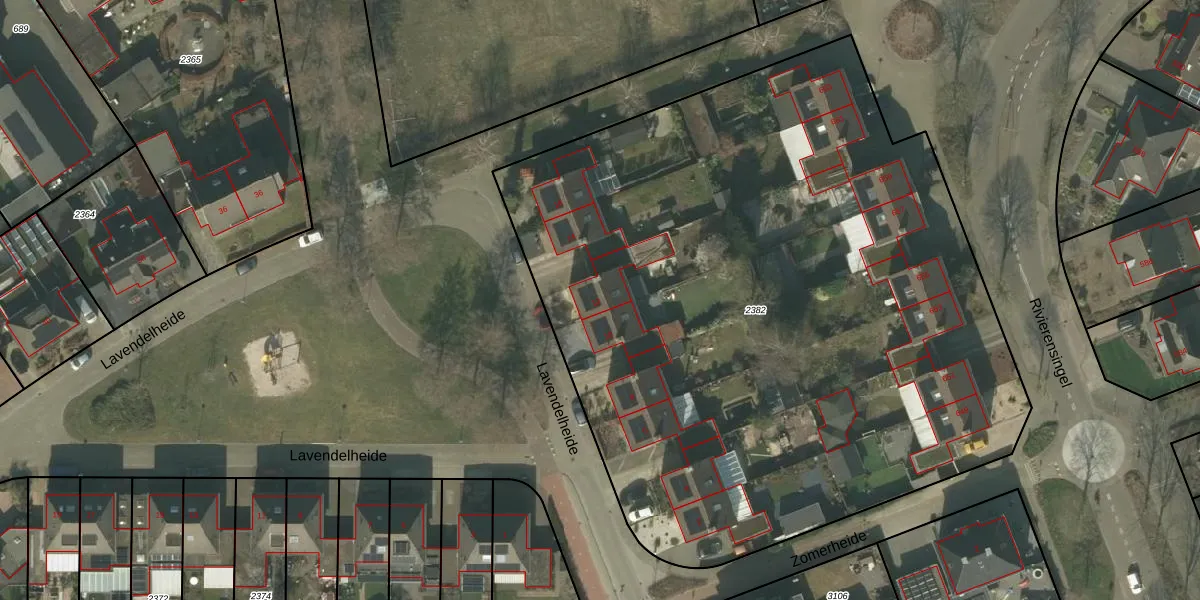 Lavendelheide 12 is gelegen op kadastraal perceel HMD00O2382. Deze kadastrale aanduiding is uniek en wordt gebruikt door het Kadaster om eigendomsrechten en andere zakelijke rechten vast te leggen. Het perceel maakt onderdeel uit van de kadastrale gemeente Helmond.