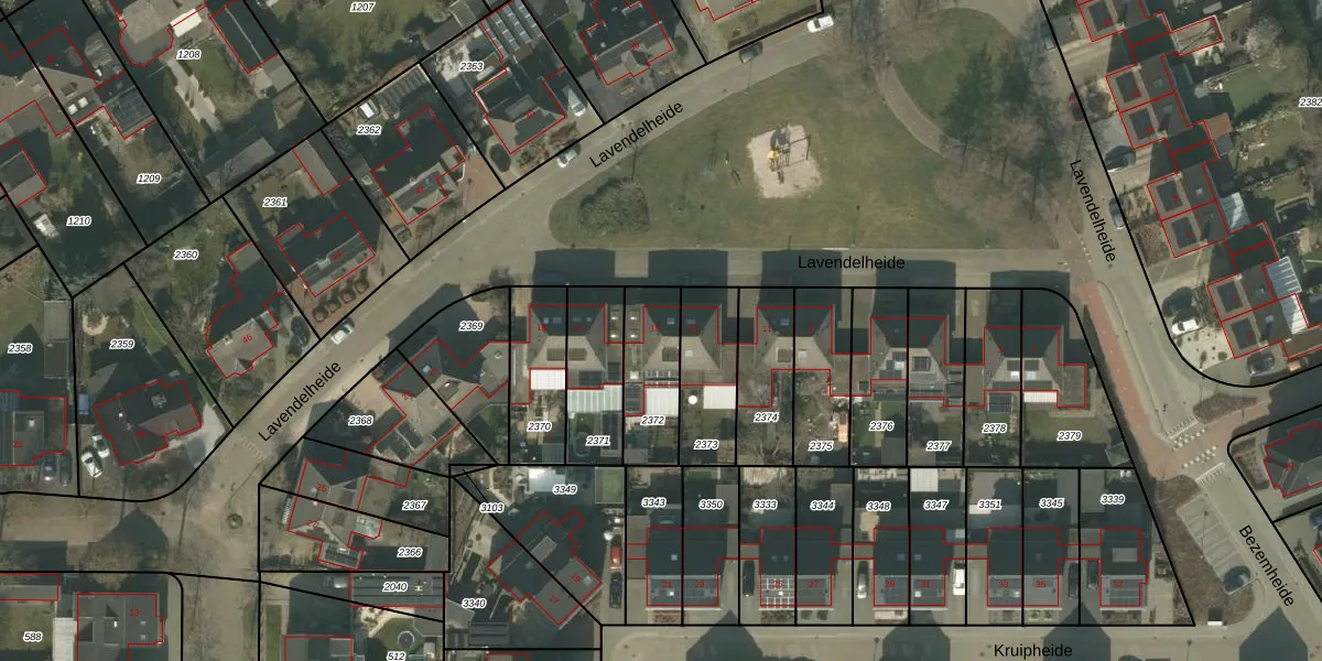 Lavendelheide 15 is gelegen op kadastraal perceel HMD00O2372. Deze kadastrale aanduiding is uniek en wordt gebruikt door het Kadaster om eigendomsrechten en andere zakelijke rechten vast te leggen. Het perceel maakt onderdeel uit van de kadastrale gemeente Helmond.