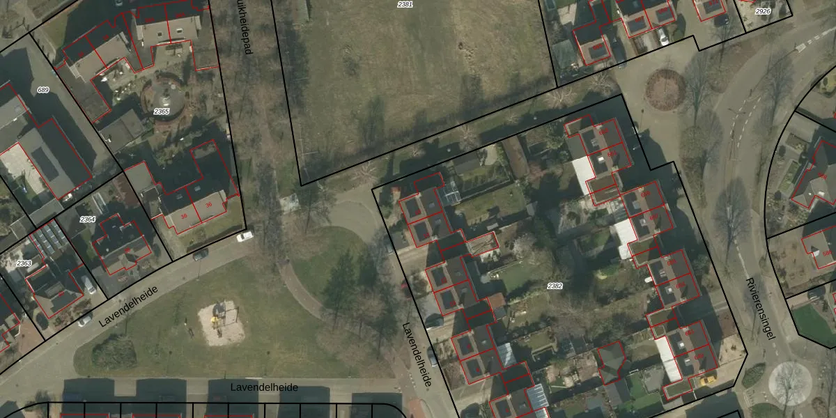 Lavendelheide 16 is gelegen op kadastraal perceel HMD00O2382. Deze kadastrale aanduiding is uniek en wordt gebruikt door het Kadaster om eigendomsrechten en andere zakelijke rechten vast te leggen. Het perceel maakt onderdeel uit van de kadastrale gemeente Helmond.