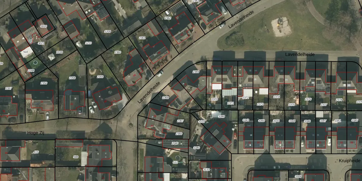 Lavendelheide 23 is gelegen op kadastraal perceel HMD00O2368. Deze kadastrale aanduiding is uniek en wordt gebruikt door het Kadaster om eigendomsrechten en andere zakelijke rechten vast te leggen. Het perceel maakt onderdeel uit van de kadastrale gemeente Helmond.