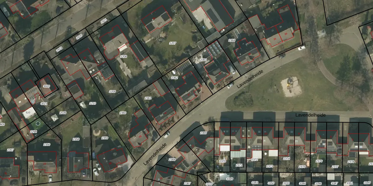 Het perceel waarop Lavendelheide 42 staat heeft een oppervlakte van 425 m². Dit is een groot perceel. De perceeloppervlakte wordt geregistreerd door het Kadaster. Gedetailleerde informatie over de maten van dit perceel kunt u vinden in het rapport Kadastrale kaart met maatvoering van Lavendelheide 42.