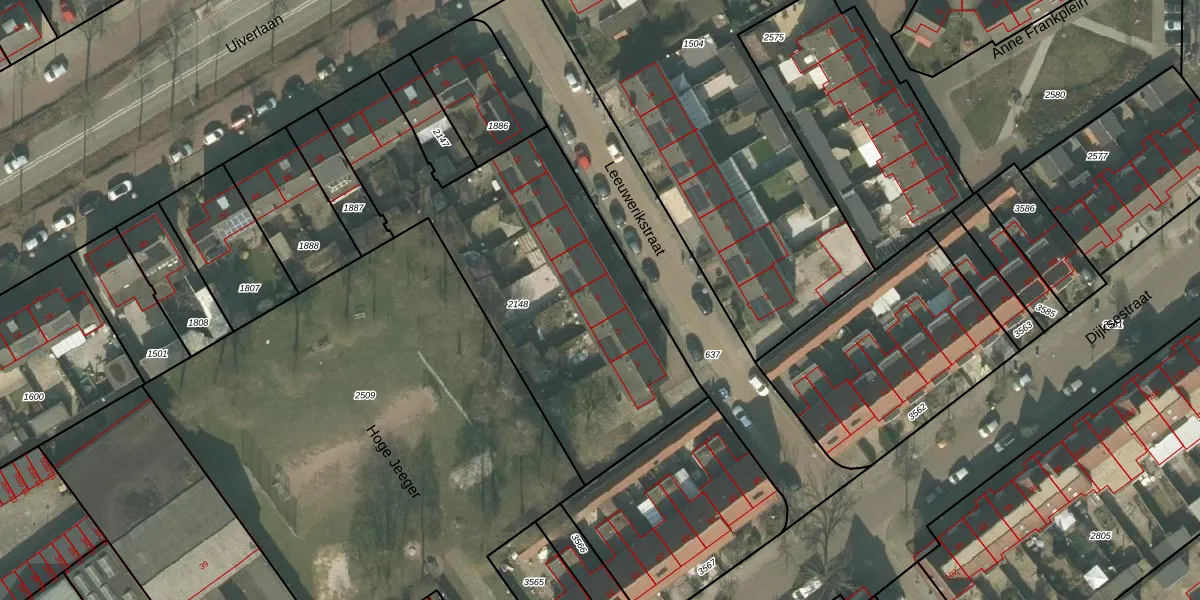 Het perceel waarop Leeuwerikstraat 5 staat heeft een oppervlakte van 1633 m². Dit is een zeer groot perceel. De perceeloppervlakte wordt geregistreerd door het Kadaster. Gedetailleerde informatie over de maten van dit perceel kunt u vinden in het rapport Kadastrale kaart met maatvoering van Leeuwerikstraat 5.