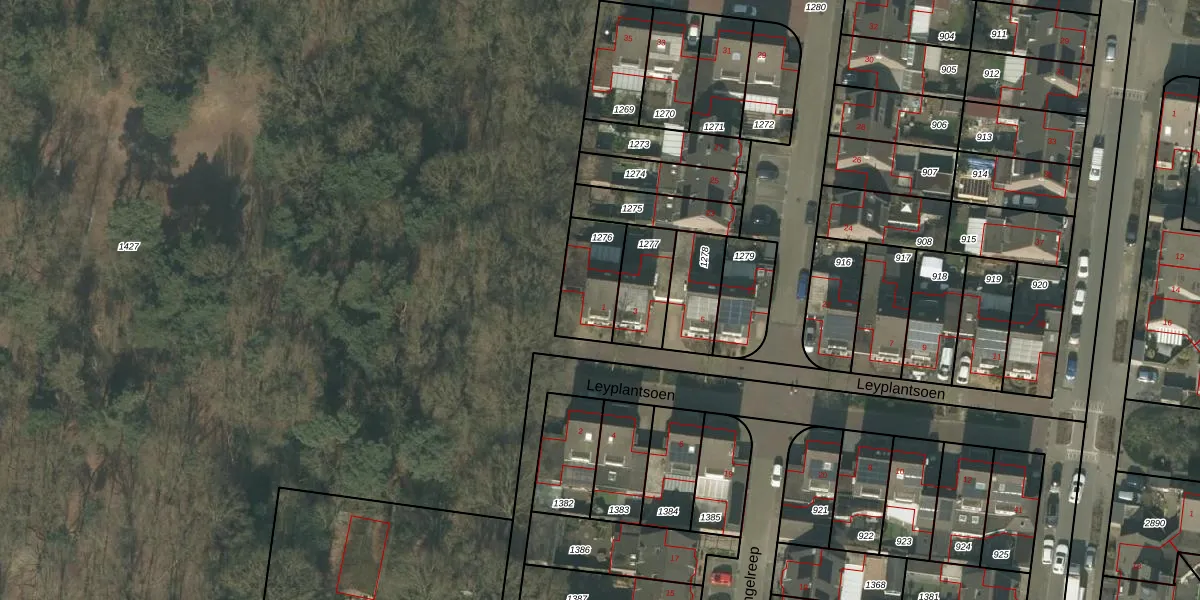 Het perceel waarop Leyplantsoen 1 staat heeft een oppervlakte van 189 m². Dit is een middelgroot perceel. De perceeloppervlakte wordt geregistreerd door het Kadaster. Gedetailleerde informatie over de maten van dit perceel kunt u vinden in het rapport Kadastrale kaart met maatvoering van Leyplantsoen 1.