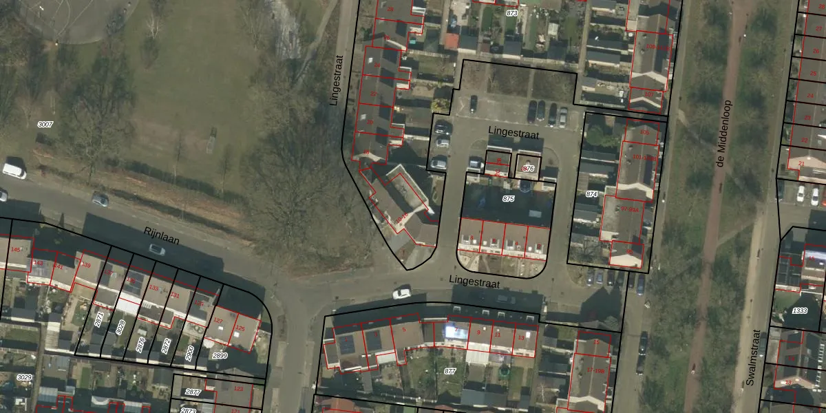 Het perceel waarop Lingestraat 12 staat heeft een oppervlakte van 3477 m². Dit is een zeer groot perceel. De perceeloppervlakte wordt geregistreerd door het Kadaster. Gedetailleerde informatie over de maten van dit perceel kunt u vinden in het rapport Kadastrale kaart met maatvoering van Lingestraat 12.