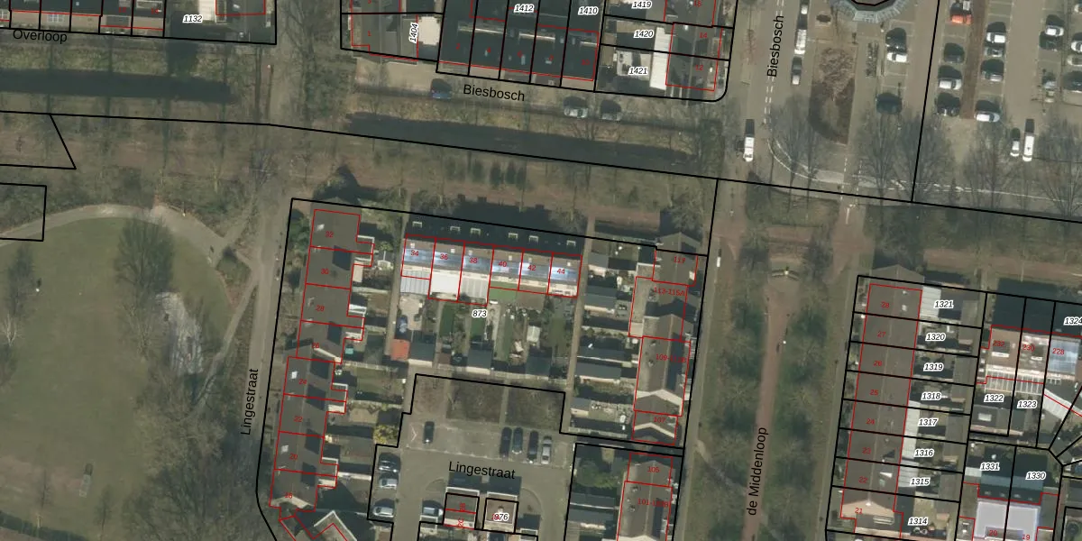 Het perceel waarop Lingestraat 42 staat heeft een oppervlakte van 3477 m². Dit is een zeer groot perceel. De perceeloppervlakte wordt geregistreerd door het Kadaster. Gedetailleerde informatie over de maten van dit perceel kunt u vinden in het rapport Kadastrale kaart met maatvoering van Lingestraat 42.