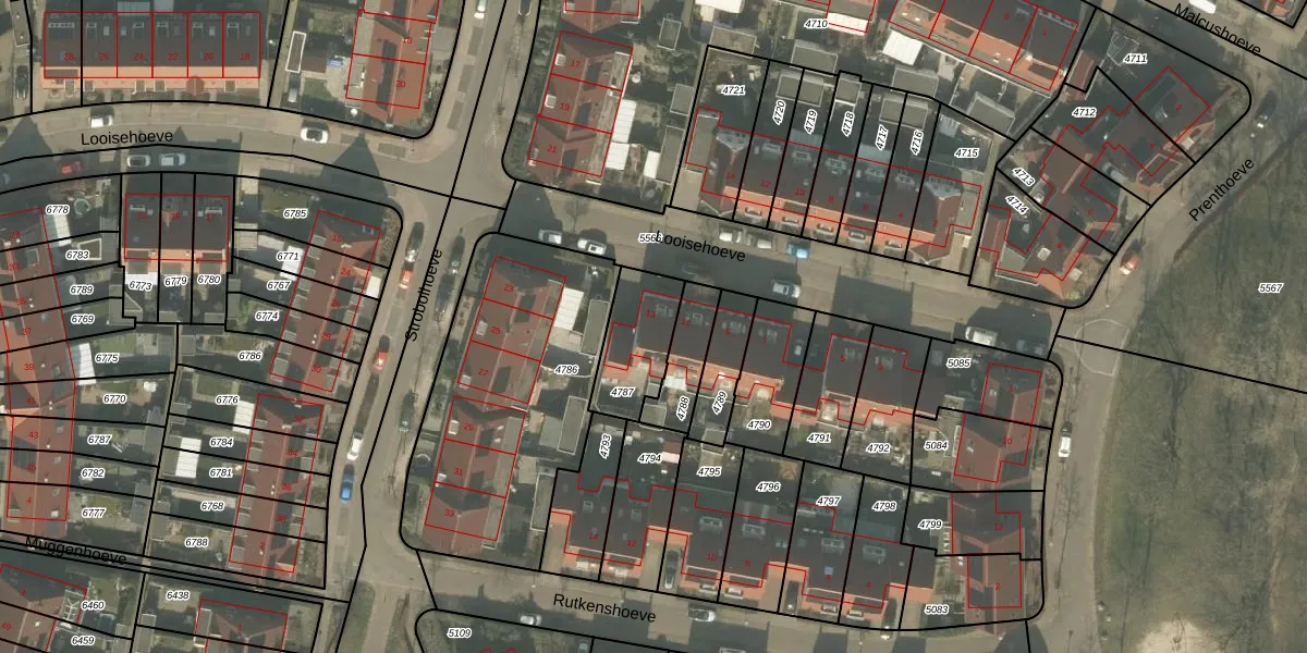 Het perceel waarop Looisehoeve 13 staat heeft een oppervlakte van 220 m². Dit is een middelgroot perceel. De perceeloppervlakte wordt geregistreerd door het Kadaster. Gedetailleerde informatie over de maten van dit perceel kunt u vinden in het rapport Kadastrale kaart met maatvoering van Looisehoeve 13.