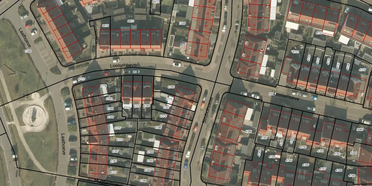 Het perceel waarop Looisehoeve 15 staat heeft een oppervlakte van 217 m². Dit is een middelgroot perceel. De perceeloppervlakte wordt geregistreerd door het Kadaster. Gedetailleerde informatie over de maten van dit perceel kunt u vinden in het rapport Kadastrale kaart met maatvoering van Looisehoeve 15.
