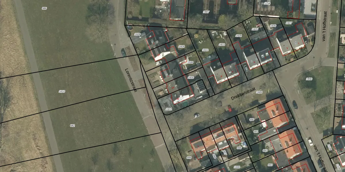 Gebruik de zoekbalk of klik op een perceel voor informatie over de adressen binnen dit perceel.
