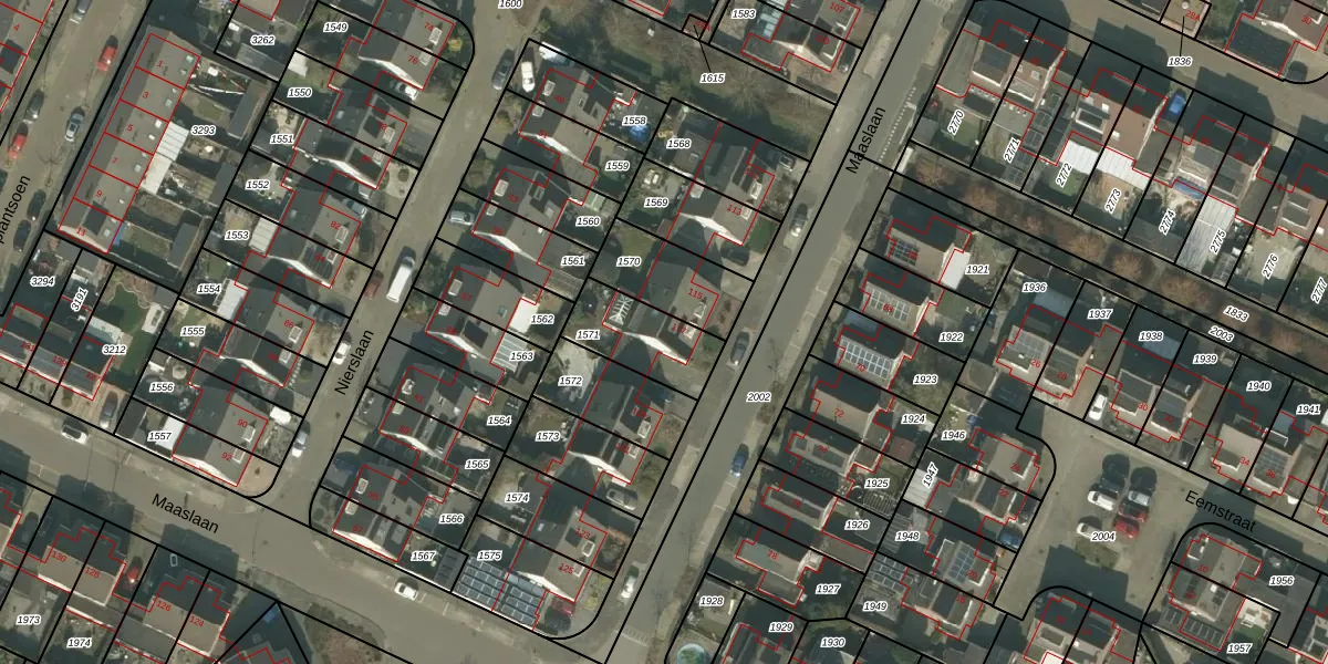 Het perceel waarop Maaslaan 117 staat heeft een oppervlakte van 228 m². Dit is een middelgroot perceel. De perceeloppervlakte wordt geregistreerd door het Kadaster. Gedetailleerde informatie over de maten van dit perceel kunt u vinden in het rapport Kadastrale kaart met maatvoering van Maaslaan 117.