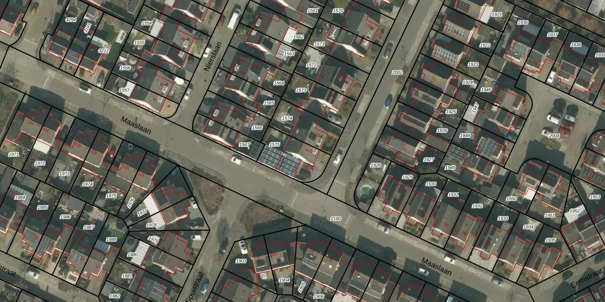 Maaslaan 125 is gelegen op kadastraal perceel HMD00O1575. Deze kadastrale aanduiding is uniek en wordt gebruikt door het Kadaster om eigendomsrechten en andere zakelijke rechten vast te leggen. Het perceel maakt onderdeel uit van de kadastrale gemeente Helmond.