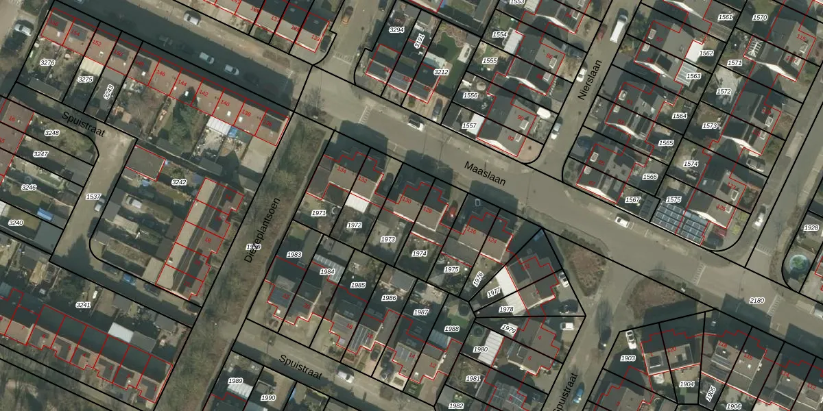 Het perceel waarop Maaslaan 130 staat heeft een oppervlakte van 208 m². Dit is een middelgroot perceel. De perceeloppervlakte wordt geregistreerd door het Kadaster. Gedetailleerde informatie over de maten van dit perceel kunt u vinden in het rapport Kadastrale kaart met maatvoering van Maaslaan 130.