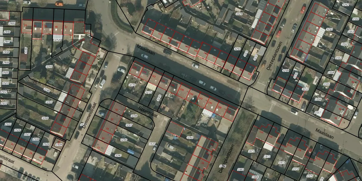 Maaslaan 146 is gelegen op kadastraal perceel HMD00O3242. Deze kadastrale aanduiding is uniek en wordt gebruikt door het Kadaster om eigendomsrechten en andere zakelijke rechten vast te leggen. Het perceel maakt onderdeel uit van de kadastrale gemeente Helmond.