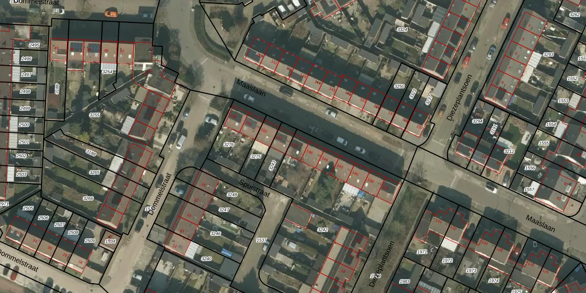 Maaslaan 148 is gelegen op kadastraal perceel HMD00O3242. Deze kadastrale aanduiding is uniek en wordt gebruikt door het Kadaster om eigendomsrechten en andere zakelijke rechten vast te leggen. Het perceel maakt onderdeel uit van de kadastrale gemeente Helmond.