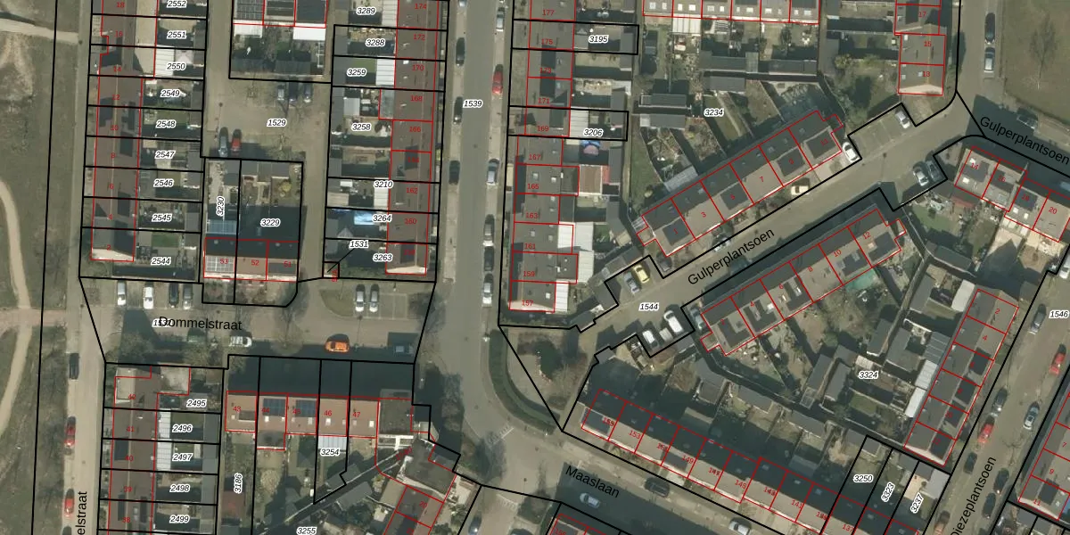 Maaslaan 159 is gelegen op kadastraal perceel HMD00O3234. Deze kadastrale aanduiding is uniek en wordt gebruikt door het Kadaster om eigendomsrechten en andere zakelijke rechten vast te leggen. Het perceel maakt onderdeel uit van de kadastrale gemeente Helmond.