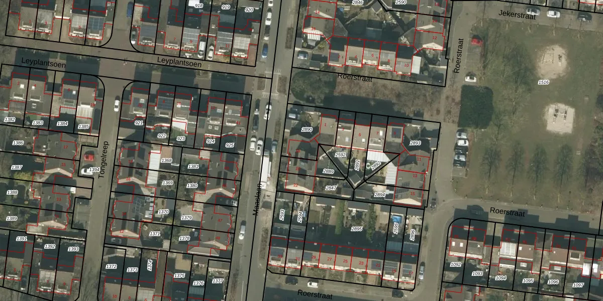 Maaslaan 18 is gelegen op kadastraal perceel HMD00O2890. Deze kadastrale aanduiding is uniek en wordt gebruikt door het Kadaster om eigendomsrechten en andere zakelijke rechten vast te leggen. Het perceel maakt onderdeel uit van de kadastrale gemeente Helmond.